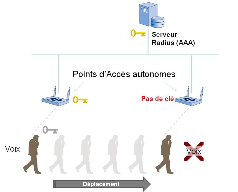 Avec les points d’accès autonomes traditionnels, indépendants les uns des autres, la mobilité rapide et transparente sur le réseau sans fil sécurisé, utilisant la norme IEEE 802.1X et EAP pour l’authentification, n’est tout simplement pas possible.